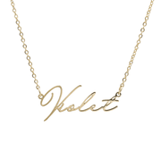 This finely crafted necklace showcases your chosen name or word in elegant script, engraved on a minimalist gold or silver-plated chain.