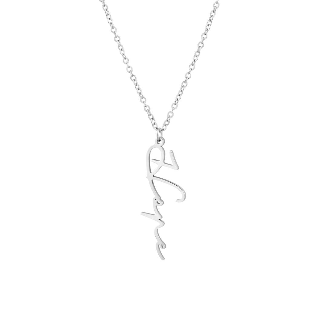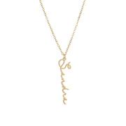 Personalise this elegant gold-plated necklace with a name, word or initials engraved in vertical script. Its minimalist design makes it a unique and meaningful accessory for both everyday wear and special occasions.
