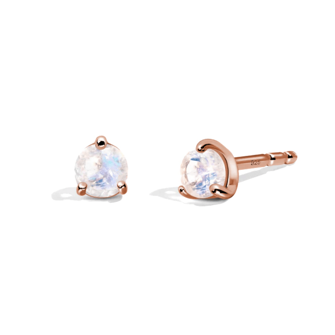 Featuring genuine Moonela moonstone, these delicate stud earrings showcase round brilliant-cut stones measuring 3.5 mm in diameter. A timeless and subtle way to add the mystical glow of moonstone to your everyday look.