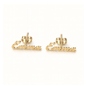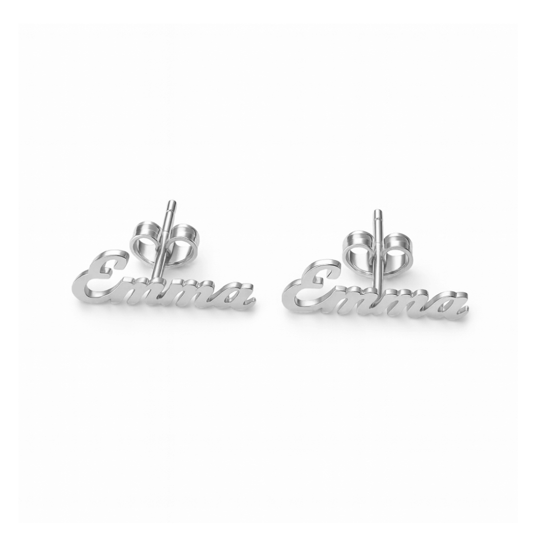 The Custom Name Earrings let you carry meaning wherever you go. Designed in a sleek script font, these studs are crafted from 925 sterling silver or 18k gold plated and can be personalised with any name or word of your choice. A thoughtful gift and a timeless everyday accessory.