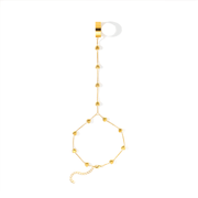 Materiale: Acciaio inossidabile placcato oro 18K Lunghezza: 22cm + 5cm Estensione Lunghezza Catena ad Anello: 12.5cm Diametro Anello: 2cm Peso: 5.29g Durabilità : Antiossidante / Resistente all’acqua Realizzato da Moonela